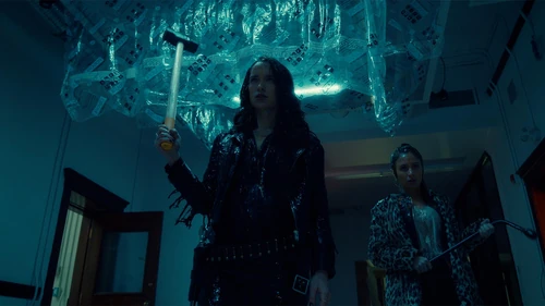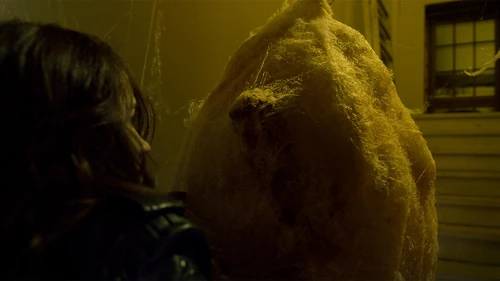 The construction site where the worker went missing is supervised by Wynonna's high school friend Mercedes Gardner, the property's owner. She gives Wynonna access to its obviously haunted halls, and while Earp is digging around the site for clues, she unexpectedly runs into Revenant Earl there. We missed him! Turns out he needs a regular job just as much as the next undead guy. While giving Earl chase, Wynonna bumps into the cocooned corpse of construction worker Jesus, wrapped up in what appears to be a spider's web. She takes the human speed-bag back to headquarters where she can subject it to experimentation, as Earl escapes to creep out another day.