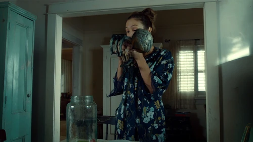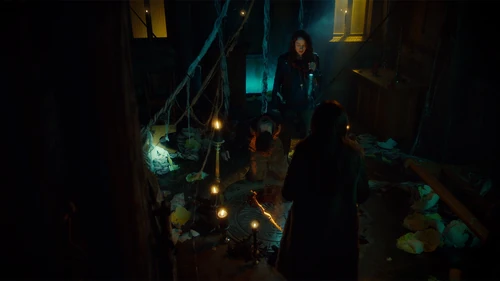Back at the lab, Jeremy gives the Earp sisters a crash course in demonology: in decimating the egg sacks, they cleared a path to an energy source and seal which other supernatural creatures can now access unimpeded. Who are those supernatural creatures? The Widows, of course. But more of them later. The Black Badge are going to have to dig deeper...just, not right away. And back at the Earp residence, Waverly, to celebrate a hard day of work, indulges on a midnight snack: dead baby spider thing. Either she's trying out a new diet, or the black goo she touched is turning her into something real strange real fast.
