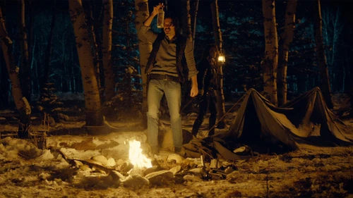 Doc has been camping out in the wintry woods to seclude himself from Wynonna and the Revenants that want to kill him for aiding the heir on her rampage. His reverie is interrupted first by a raging Revenant, then by Wynonna — Doc doesn't know which guest is worse. Wynonna kills the Revenant before asking Doc for some help identifying the last of the posse that took her daddy, but Doc refuses: he's risking life and limb for her, and she's not reciprocating.